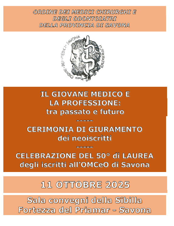 Nel rimarcare l’importanza del rapporto tra tutti i medici, dai giovani ai “meno” giovani, che hanno dato lustro alla nostra professione, in questo evento si celebrerà anche il 50° di Laurea di numerosi iscritti: in uno spirito di trasmissione dell’arte medica dai Colleghi dalla nota esperienza ai giovani che dovranno affrontare una vita professionale difficile ma ricca di esperienze e di sicuro appagamento personale.
